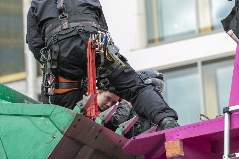 David: Ja. Die Straße ist ein Raum, der erst einmal frei betretbar ist. Da gibt es keine Zugangsbegrenzungen. Wenn (da), und das ist dann im besten Fall Straßentheater, eine Situation entsteht, wie zum Beispiel: Akteure der Klimaschutzgruppe „Letzte Generation“ so agieren, dass die Polizei eingreift, - ist das in Teilen auch inszeniert. Beziehungsweise eine symbolische, eine Stellvertreterhandlung. Die Adressaten dieser Aktionen, die Politik und die Gesellschaft, treten in dem direkten Moment der Auseinandersetzung, in den Hintergrund. Gelingt es den Aktivist*Innen allerdings sehr viele Menschen über eine lange Zeit auf die Strasse zu bringen, verlässt die Aktion des zivilen Ungehorsams den symbolischen Raum und hat die Chance die Gesellschaft tatsächlich zu verändern. Es ist wie unter einer Lupe, einem Brennglas: Aktivist versus Polizist. Da wird es emotional, es entsteht Druck wie in einem Dampfkessel! Und im besten Fall Fotos, die diesen gesellschaftlichen Aushandlungsprozess eindrucksvoll erzählen können.